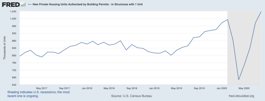 While slack will persist in the service sector, other sectors have been doing well. Historic low mortgage rates and greater telecommuting and remote learning have enlarged the demand for home space and sparked a boom in the housing sector, especially single-family homes. The chart below shows the recent surge in permits for single-family homes, which in August surpassed their February peak. Sales of building materials also have been robust over recent months, suggesting that additions and alterations to existing homes have been booming. Vibrancy in housing activity has been most evident in the upper end of the market where year-over-year existing-home sales are up 50 percent or more in many parts of the country. In contrast, existing home sales at the lower end are down from a year earlier. These divergent housing trends highlight the disparate impact of the COVID shock.