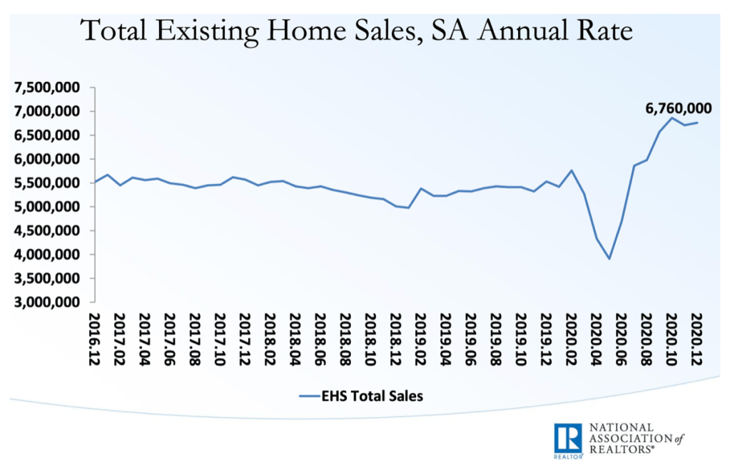 However, the greatest strength in the housing sector has been concentrated toward the upper end of the market. The next chart shows the twelve-month percent change in existing home sales by the price range of the home sold. Sales in the $1 million and over range nearly doubled over the past year and sales in the $750,000 to $1 million range rose about 75 percent. In contrast, sales in the $100,000 to $250,000 range increased only 6 percent while sales of homes below $100,000 actually fell 15 percent. Weakness in prices of homes at the lower end is in keeping with other evidence showing that those at the lower end of the wage scale—mostly in the service sectors—have been hit hardest by COVID-related restrictions (see Taking Stock of the Economic Recovery, January 4, 2021).