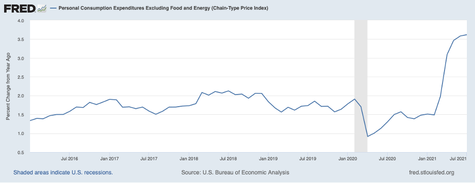As noted in recent commentaries (see, August 13, 2021, Supply Restraints Continue to Hold Back the Economy, and June 25, 2021, The Economy: Will Inflation Be Contained?), the Fed has indicated that it sees inflation above 2 percent for a period of time to compensate for several years of shortfalls in order to bring average inflation up to 2 percent. Thus it would appear that the Fed will tolerate above 2 percent inflation for a while longer before raising its target for the federal funds rate. Of some concern, though, is the Fed has been underpredicting inflation for some time. For example, as recently as June, the median forecast of inflation for the full year 2021 by Fed policymakers was 3.4 percent. However, by July inflation had reached 3.9 percent, implying that prices would need to decline on balance over the remainder of the year for this forecast to be realized—not very likely at all.