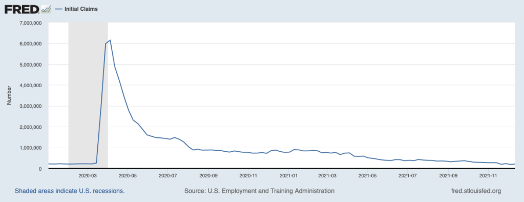Initial claims for unemployment insurance are telling a similar story. Claims have retraced nearly all of the pandemic-caused spike and have returned to levels that have been associated in the past with a strong jobs market.