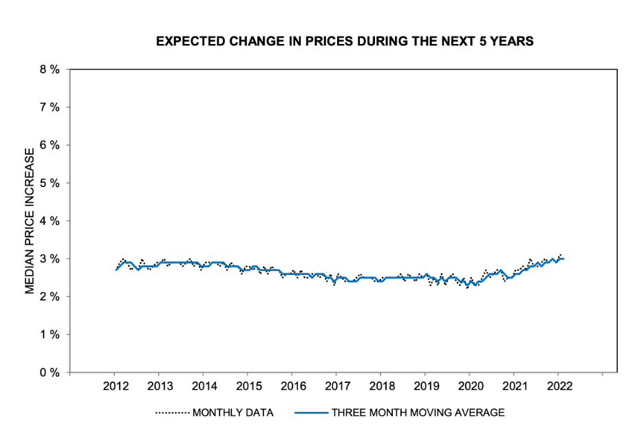 Consumers, too, are expecting higher inflation over coming years, the next chart (below).