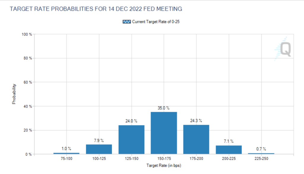 Fed Chair Powell has said that he will favor a 25 basis point increase at the upcoming mid-March FOMC meeting (from its current 0 to 25 basis point target) but has not specified how many more increases may be coming after that. The chart below shows futures market expectations for the federal funds at yearend. Market participants now see nearly a 70 percent chance that the federal funds rate will be raised 150 basis points or more by yearend—roughly 25 basis points per meeting at each of the seven additional meetings in 2022.