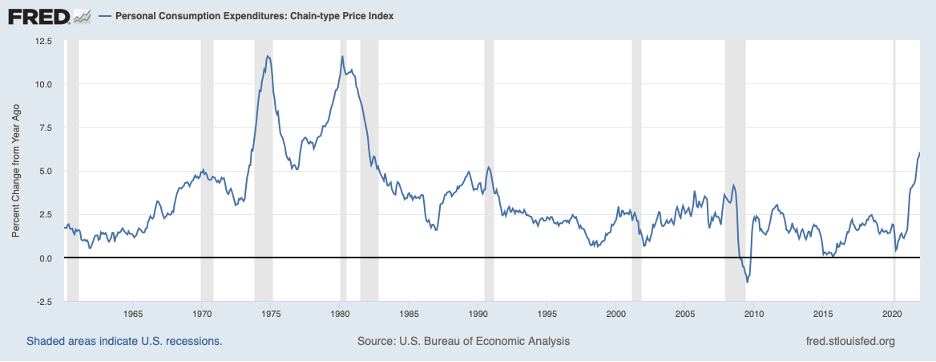 You have almost certainly discovered that prices at the pump have jumped over recent days. Unfortunately, pump prices are still headed higher. The Russian invasion of Ukraine has disrupted the global oil market and pushed energy prices higher. This impact is coming at a time when inflation is running at the fastest pace in four decades. As seen in the chart below, the Personal Consumption Index (PCE)—the Fed’s chosen measure of consumer prices—increased 6.1 percent over the twelve months ending in January, up from 1.4 percent over the previous twelve-month period.