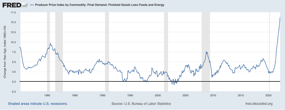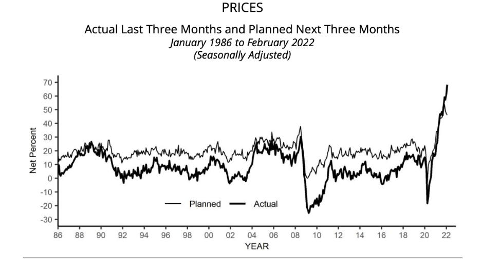 We can expect little inflation relief in the months ahead. Supply chain disruptions, which have been adding to inflation pressures for more than a year, are being aggravated by dislocations in recent weeks caused by the war in Ukraine and by reported production shutdowns in China stemming from outbreaks of COVID. The next chart shows that finished goods prices at the producer level continued their steep upward march through February, which will be adding to consumer price inflation in the coming months.