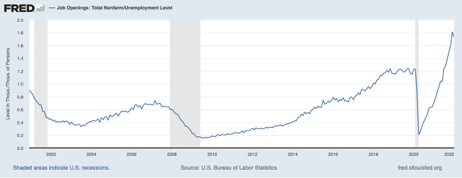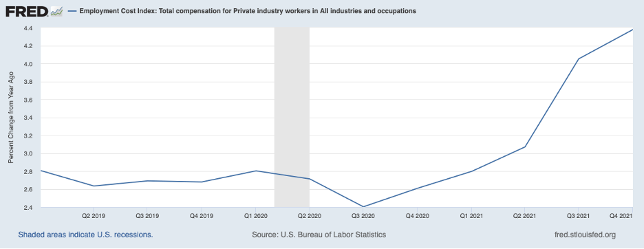 Various reports indicate that competition for workers has remained intense more recently, and this competition is being reflected in continued large increases in compensation. Employers can be expected to respond to rising labor costs by raising the prices that they charge consumers.