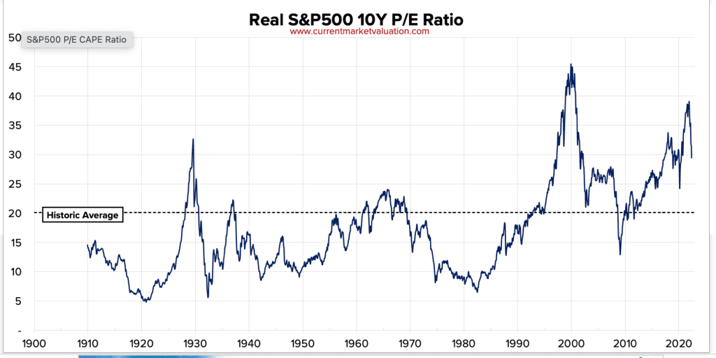 Moreover, the following chart, showing equity prices per dollar of earnings (adjusted for the cyclical variations), illustrates that the stock market sell-off has brought the P-E ratio closer to historical norms. But the P-E ratio is still high by historical standards implying that there is scope for further share price declines, especially as interest rates march even higher than currently expected and markets stay volatile. The P-E will move lower as market participants come to realize that the trajectory for the federal funds rate will have to be steeper than currently believed if the Fed is serious about its 2 percent inflation target. Forthcoming increases in interest rates will also act to restrain spending in the housing sector and other interest-rate-sensitive sectors.