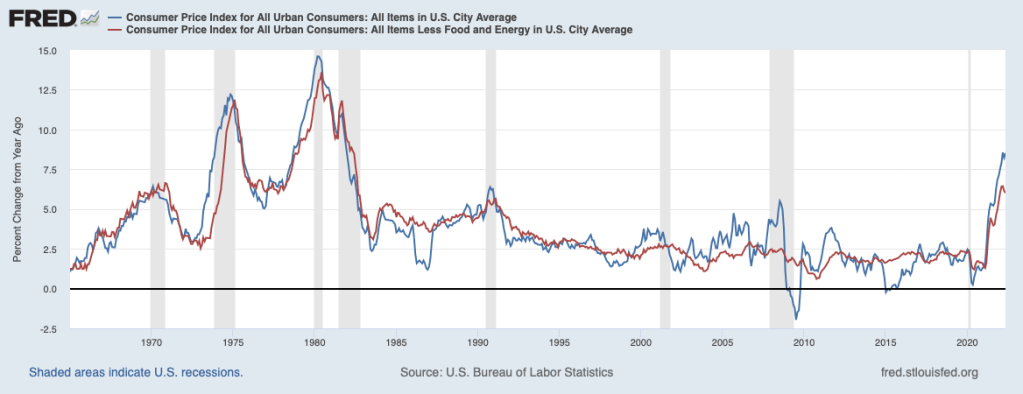 Putting the pieces together, inflation has become so entrenched that it is going to take strong medicine by the Fed to get inflation pointed toward the Fed’s 2 percent target. This entrenched inflation means that interest rates will be heading for their highest levels in decades and that home and equity prices will be moving lower for a while. A negative shock to the economy, which cannot be ruled out, would limit forthcoming increases in interest rates. It all adds up to a recession in the next year or so. Hopefully, the downturn will not be protracted.
