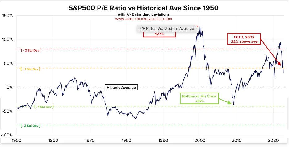 In keeping with this changing outlook for inflation and interest rates, stock prices have fallen nearly 20 percent, dragging down the Price-Earnings (P-E) ratio for stocks—as shown below. The sell-off of stocks is having the expected effects on the economy of curbing household and business demands for goods. Nonetheless, the P-E ratio remains well above—nearly a standard deviation above—its historical average. The still-high P-E ratio suggests further scope for stock price declines, given the current outlook for monetary policy by market participants.
