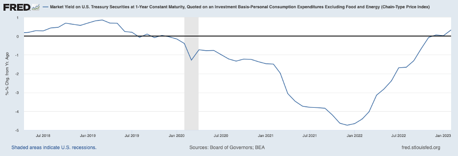 All of this indicates that the Fed still has work to do before the back of inflation is broken. The chart below has an estimate of the real one-year Treasury bill interest rate through February based on core PCE prices (the nominal one-year yield less the twelve-month change in core PCE prices). The real rate was barely positive in February (most recent data) and, even allowing for a tightening of loan markets in response to the banking disturbance in March, it is well below the level that will be necessary to curb inflation. The federal funds rate will still need to increase by at least another percentage point for inflation to be placed on a distinct and sustained downward trajectory.