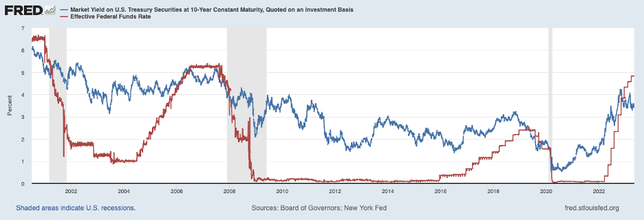 Chair Powell, in his press conference following the May 3 meeting, mentioned that he expected that the federal funds rate would need to stay high for some time before inflation eased enough for the Fed to be comfortable lowering rates. Nonetheless, financial market participants took Fed commentary to suggest that Fed tightening had come to an end and even priced in an easing of Fed policy by September.