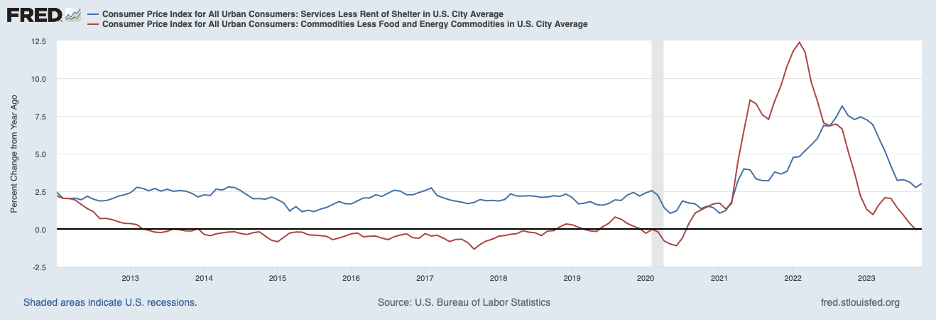 Turning to the labor market, the October employment report showed a slowing in employment growth, exaggerated by the UAW strike. Nonetheless, after allowing for strike effects, the increase in employment substantially exceeded the increase in new entrants to the labor force, maintaining pressures on the labor market.