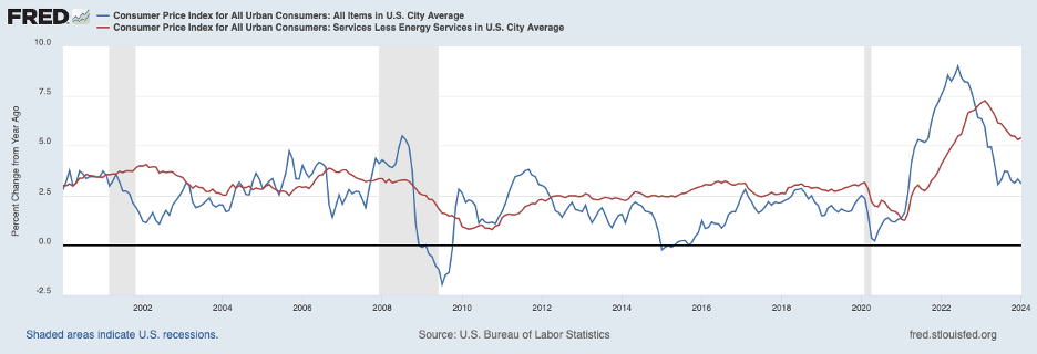 The release of CPI for January again dashed optimism for continued disinflation and near-term rate declines by the Fed. Now, market participants foresee the Fed’s first cut in rates coming around mid-year instead of the spring and the cumulative cut in rates of 75 to 100 basis points in 2024 (100 basis points equal one percentage point) instead of the expectation of 125 basis points just a couple weeks ago. Are these expectations reasonable or are market participants still overly optimistic?