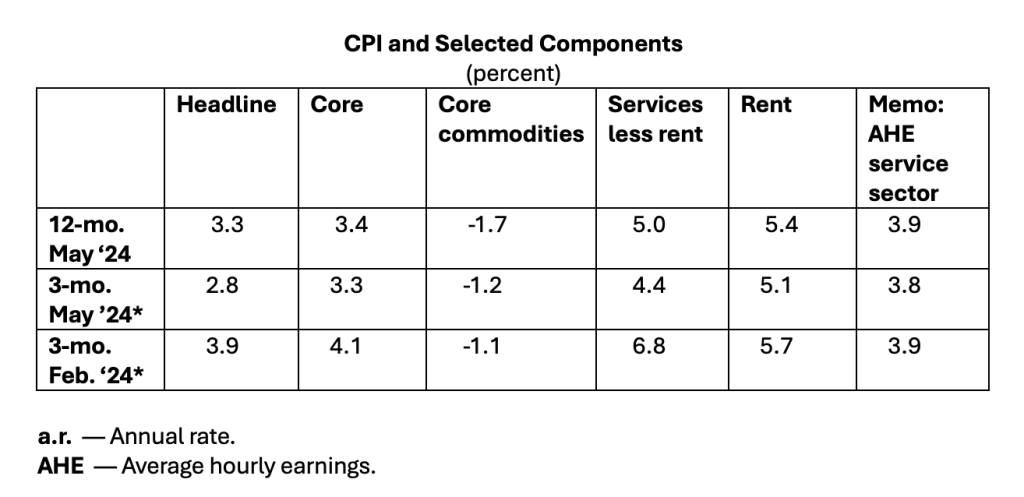 The CPI for May prompted euphoria in financial markets and restored expectations of rate cuts by the Fed in the months ahead — the first in September and another by year-end. The S&P 500 stock index rose nearly 1 percent on the day and tacked on another ¼ percent gain the following day.