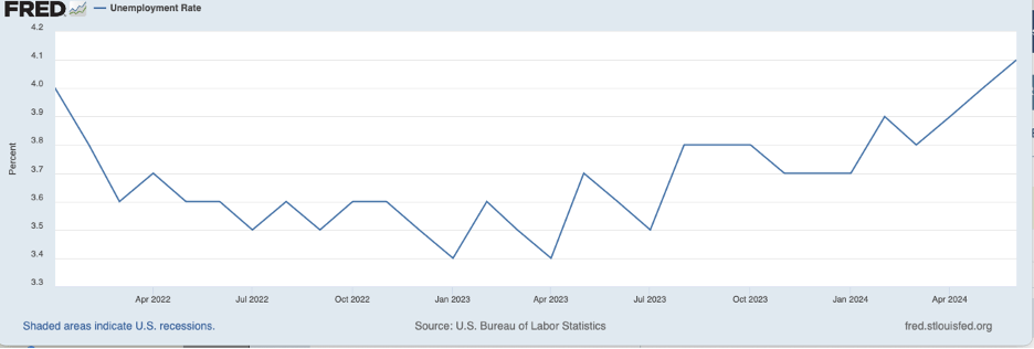 Financial market participants and observers greeted the jobs report for June with enthusiasm. The 206 thousand increase in employment, shown in the chart below, was coupled with a 54 thousand downward revision to employment gains in May. Many analysts saw this as a gradual slowing in hiring. Moreover, the unemployment rate climbed higher in June to 4.1 percent, as shown in the following chart.