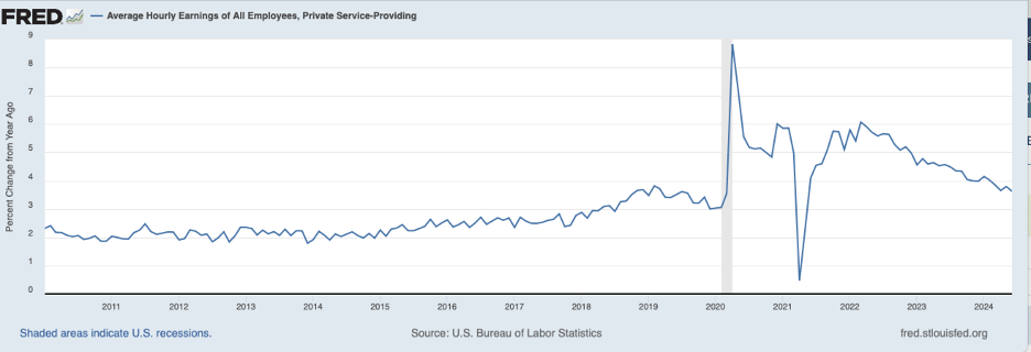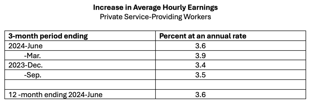 The annualized increase for the three-month period ending in June was the same 3.6 percent rate for the twelve-month period ending in June, as shown in the table. (Indeed, the rate of increase in the first six months of 2024 exceeded by a bit the rate of increase over the second half of 2023.)