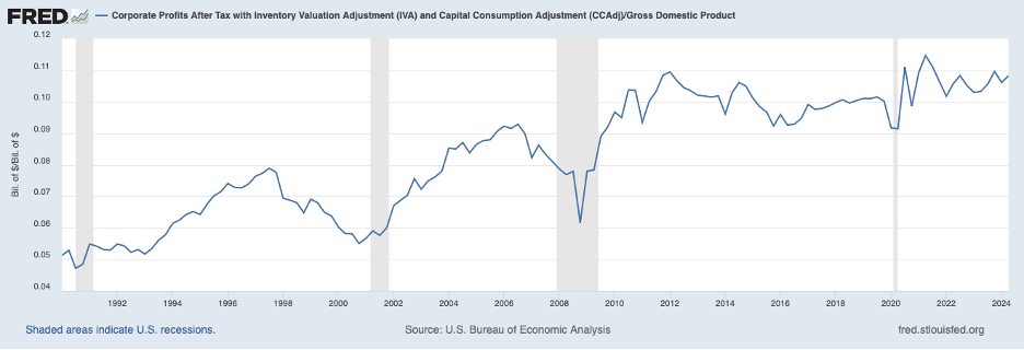 One indicator that likely will foreshadow a period of rapid productivity gains will be corporate profits. Once business output picks up in relation to labor input (productivity picks up), the initial beneficiary will be corporate profits. Over time, competitive forces will cause businesses to spread these gains to workers in the form of faster wage growth.
