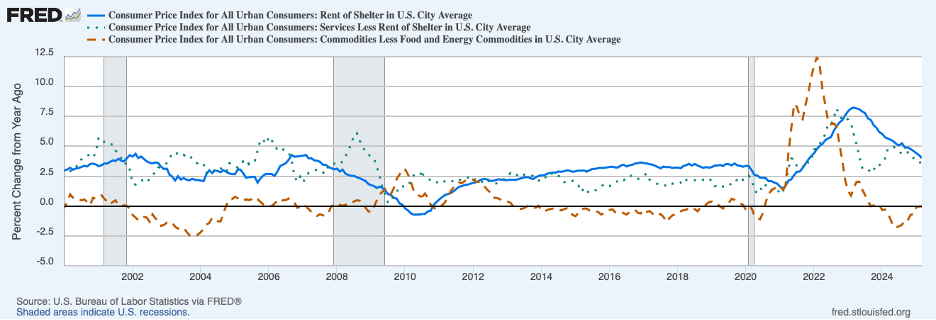Uncertainty over economic policy has moved to levels reached during the financial crisis of 2008 and the COVID-19 shock of 2020. Policy uncertainty is shown in the chart below by the index of economic policy uncertainty. The principal driver of this surge in uncertainty has been the tariff war. More recently, though, the growing tension between the White House and the Fed has added to concern about the direction of economic policy.