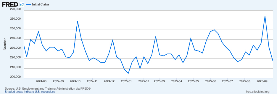 Initial claims for unemployment insurance, a more current indicator of layoffs, are shown in the next chart. Claims had been running low through most of August but jumped at the start of September, raising concern that the labor market had taken a turn for the worse. However, a surge in claims in Texas, thought to be tainted by fraud, appears to account for much of the spike in early September (also, difficulties in capturing seasonal movements, especially around the Labor Day holiday, may have accounted for some of the spike). Initial claims over the following two weeks returned to the low levels of earlier this year.
