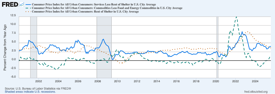 We can summarize the discussion of consumer price inflation by noting that tariffs are showing through in commodity prices and likely will continue to do so in the months ahead while inflation in service prices (other than rent) remains stubbornly high. This suggests that underlying inflation is not abating. Past episodes of inflation imply a dynamic that results in inflation persisting and requires monetary restraint to place inflation on a downward path toward price stability.