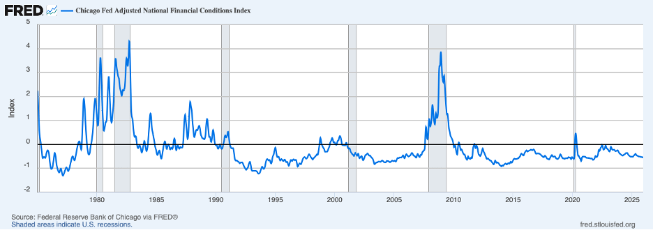 Moreover, broader financial conditions—including the stock market—continue to be very supportive of economic expansion. The next chart shows the Chicago Fed’s national financial conditions index. Values of the index below zero indicate that conditions are more accommodative than average. The chart shows that over the past couple years support to growth has come from the financial sector and that support has risen mildly.
